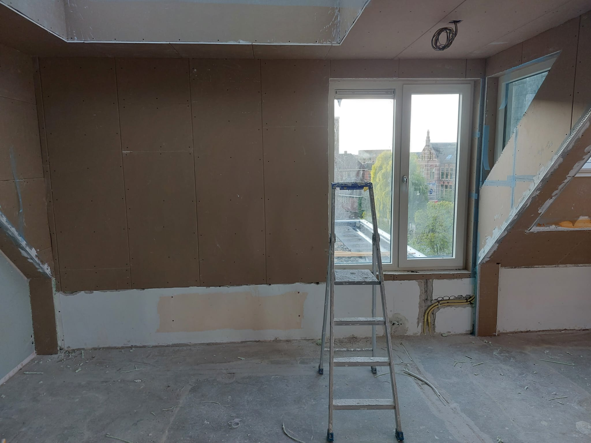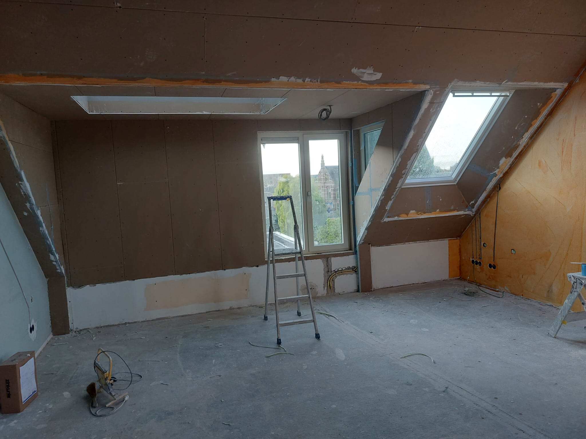 Bij een penthouses in het centrum van Leiden een dak uitbouw gerealiseerd, deze is voorzien van een groot elektrisch bediend dakraam, een kozijn en een lichkoepel.