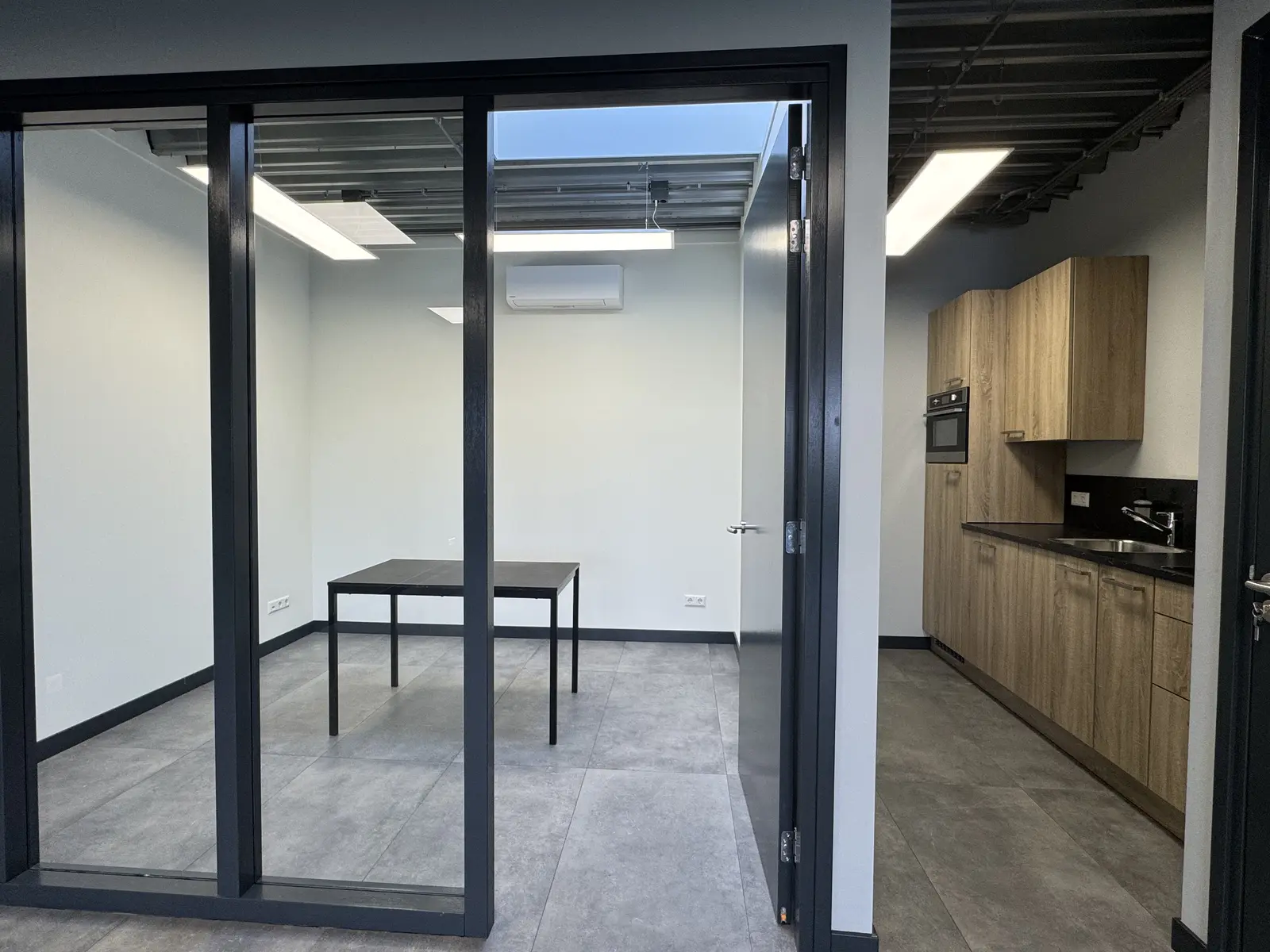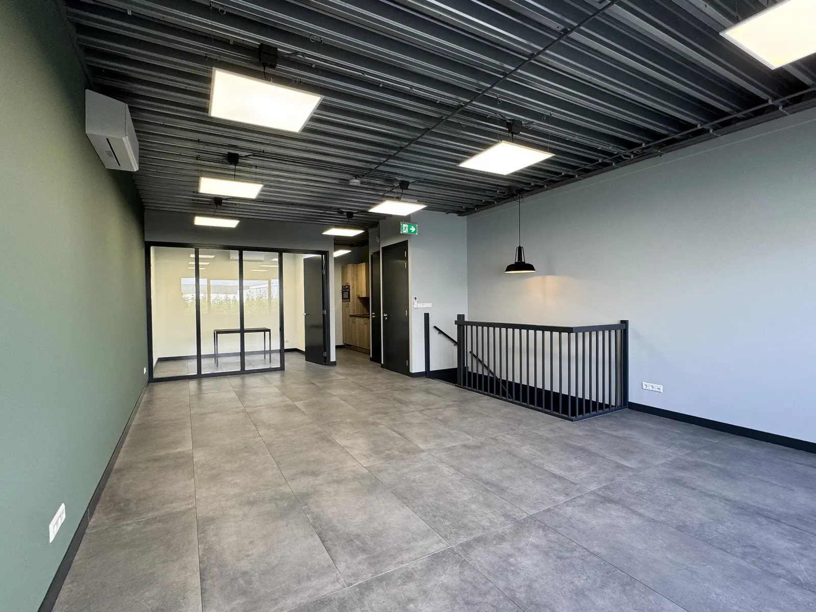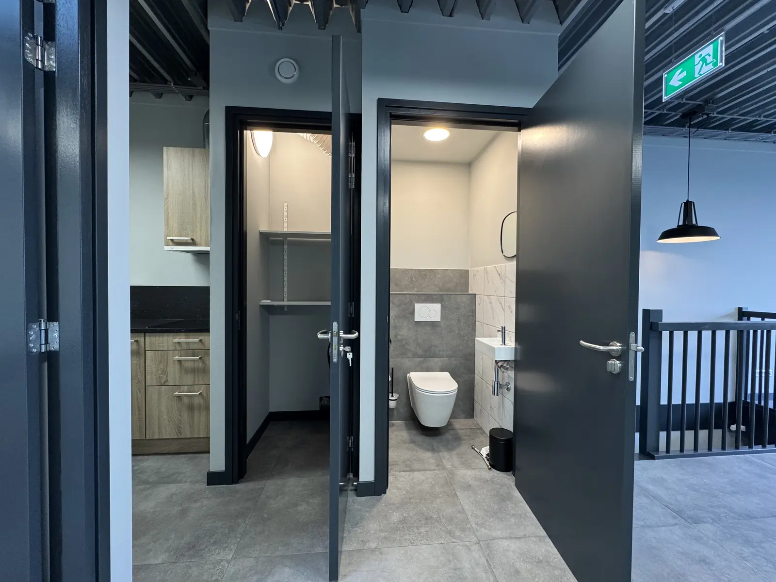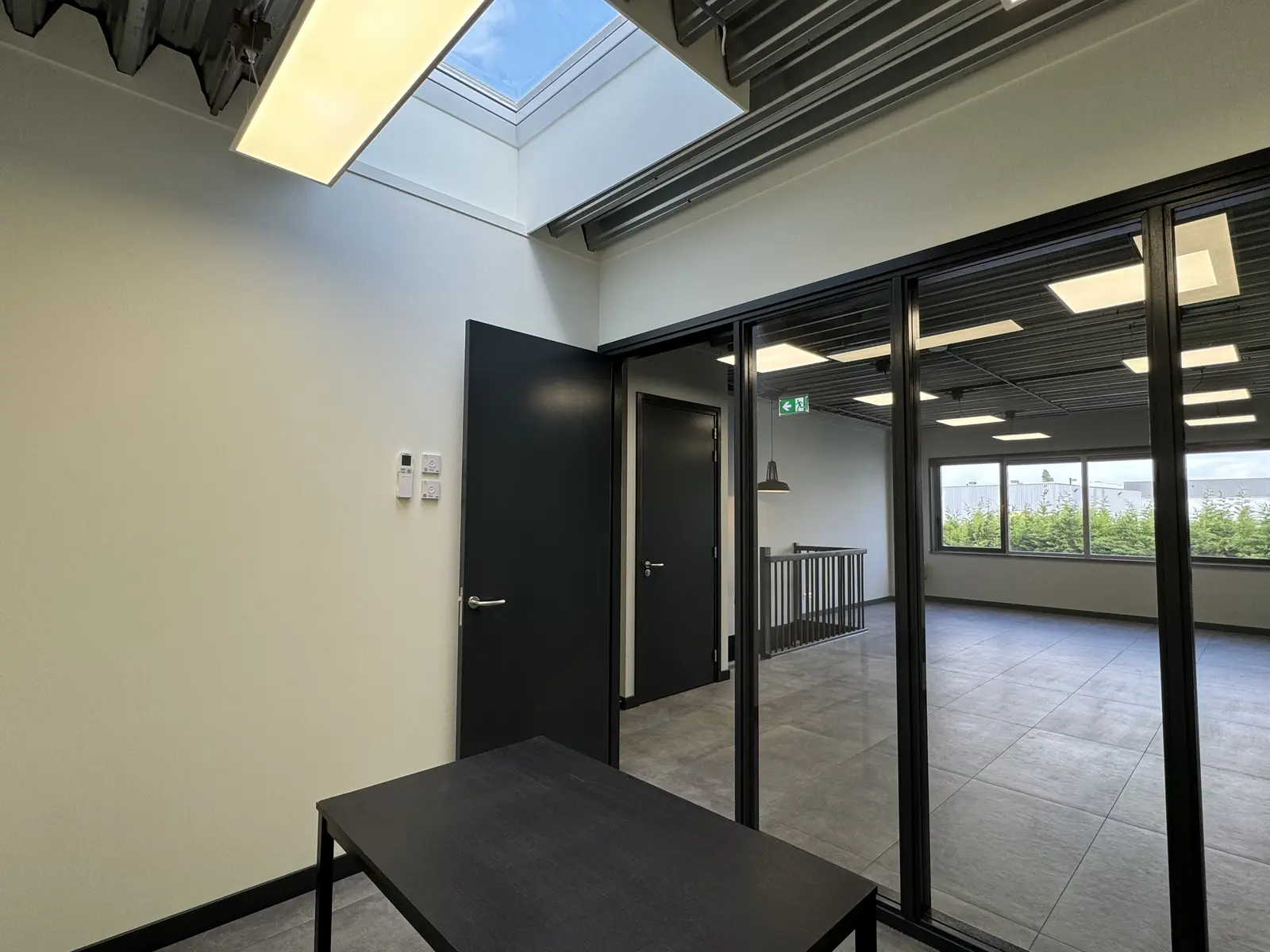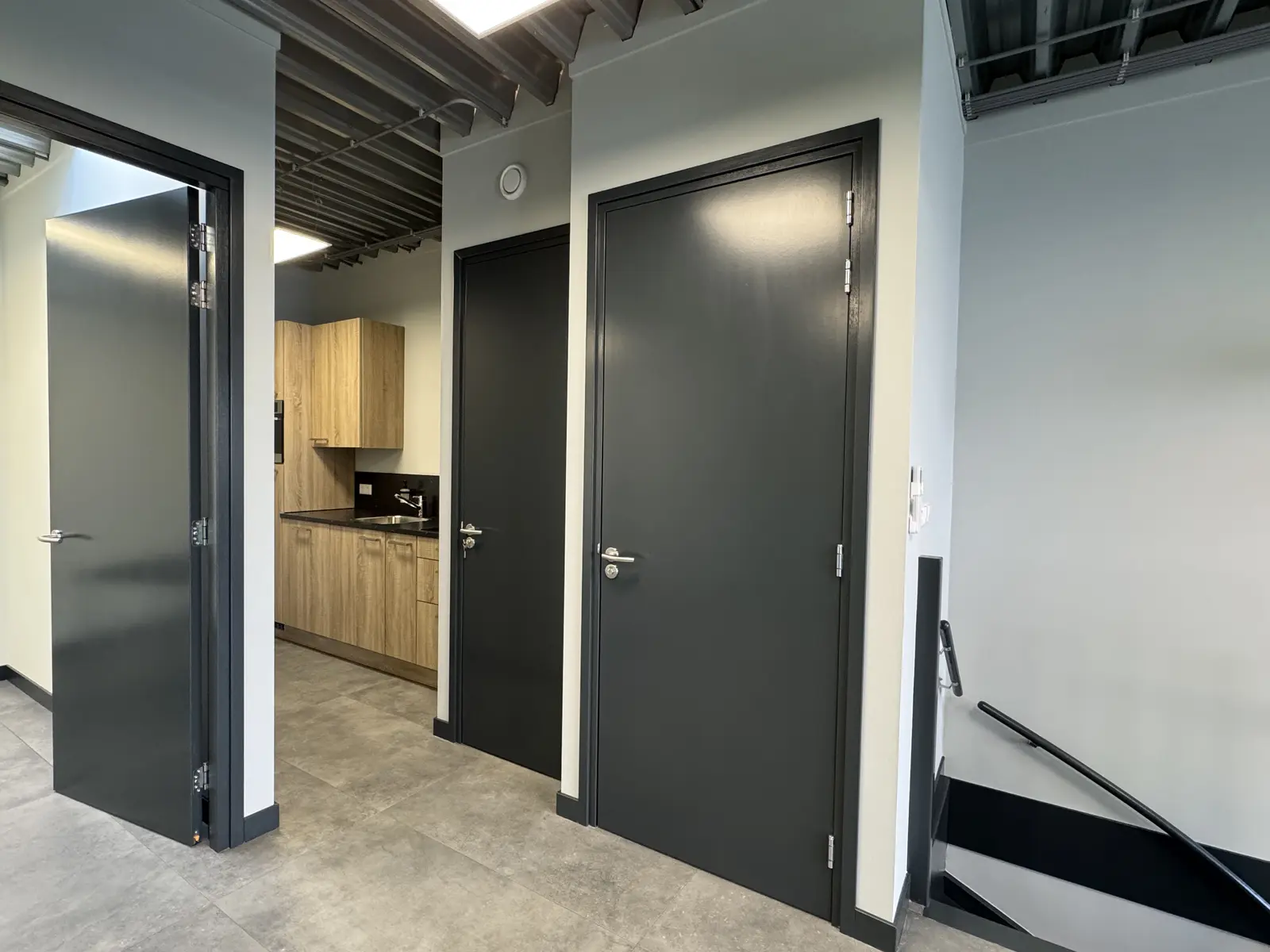 Op de eerste verdieping van een bedrijfsunit in Sassenheim een kantoorruimte gerealiseerd. Deze kantoorruimte is strak, met gladde gestucte wanden en een doorgelegde plavuizenvloer. Een efficiënte indeling, met onder ander een aparte vergaderruimte voorzien van een bedienbare daklichtkoepel. Daarnaast is de ruimte voorzien van volwaardige keuken met inbouwapparatuur en een toiletruimte.