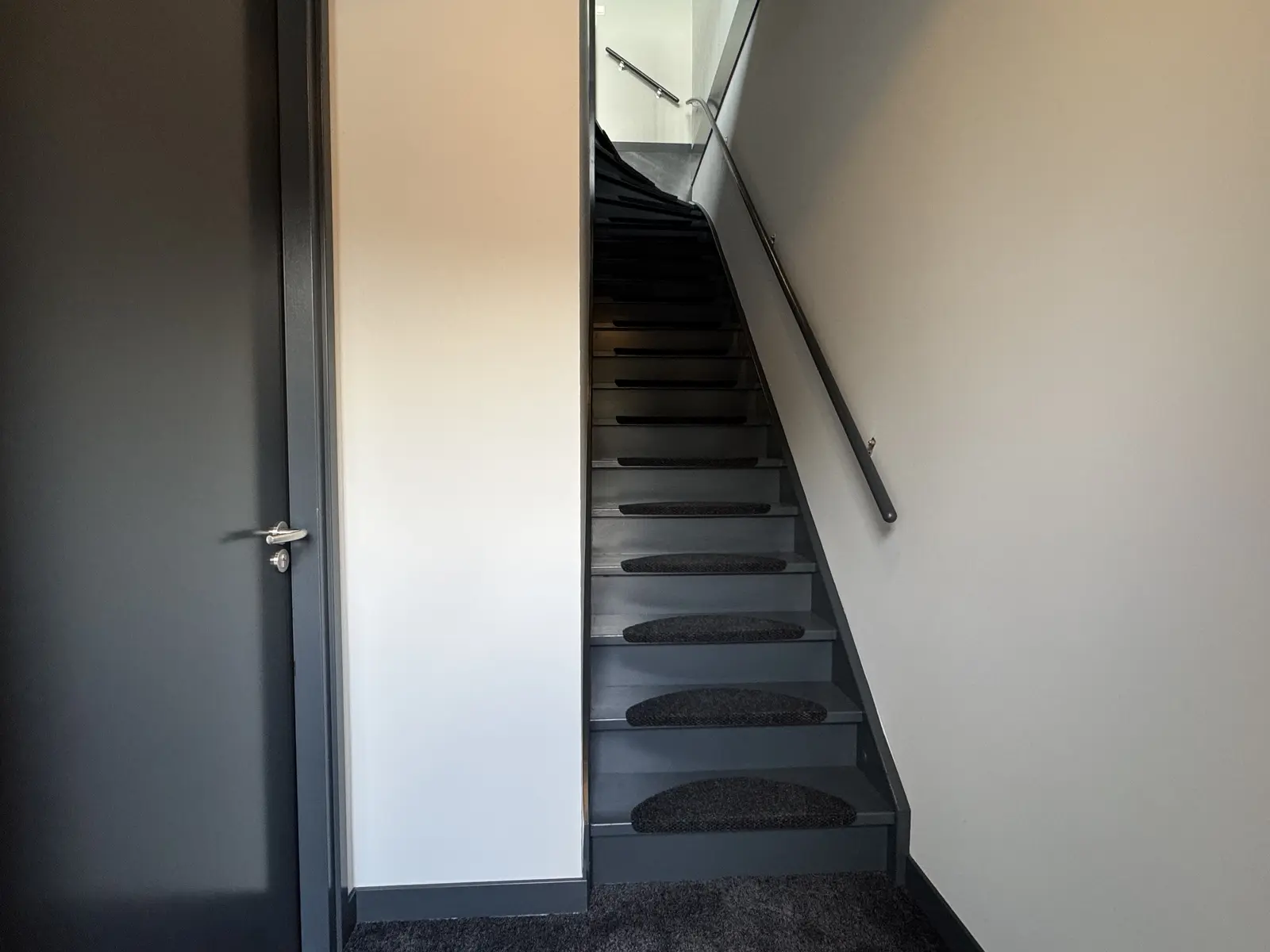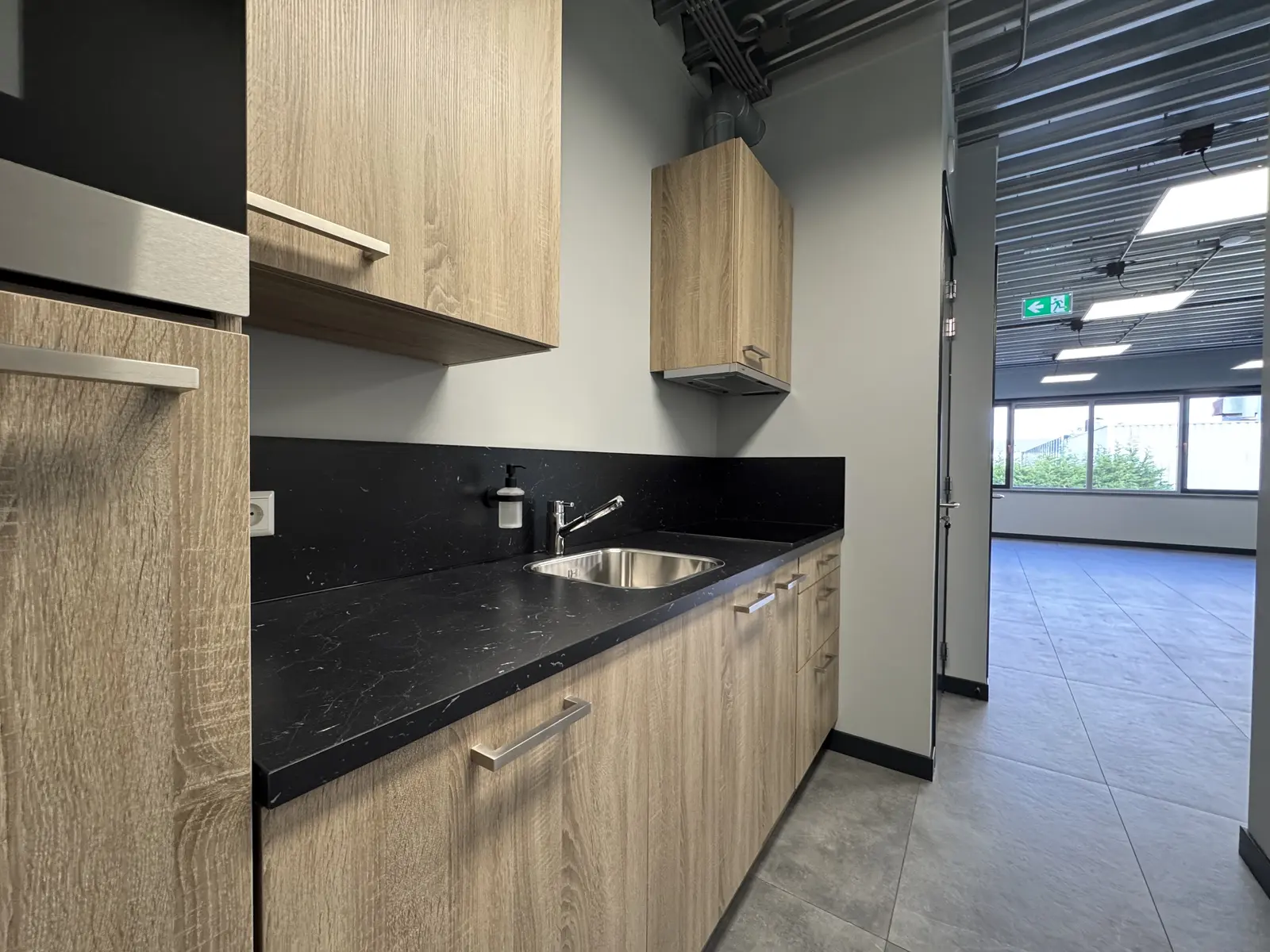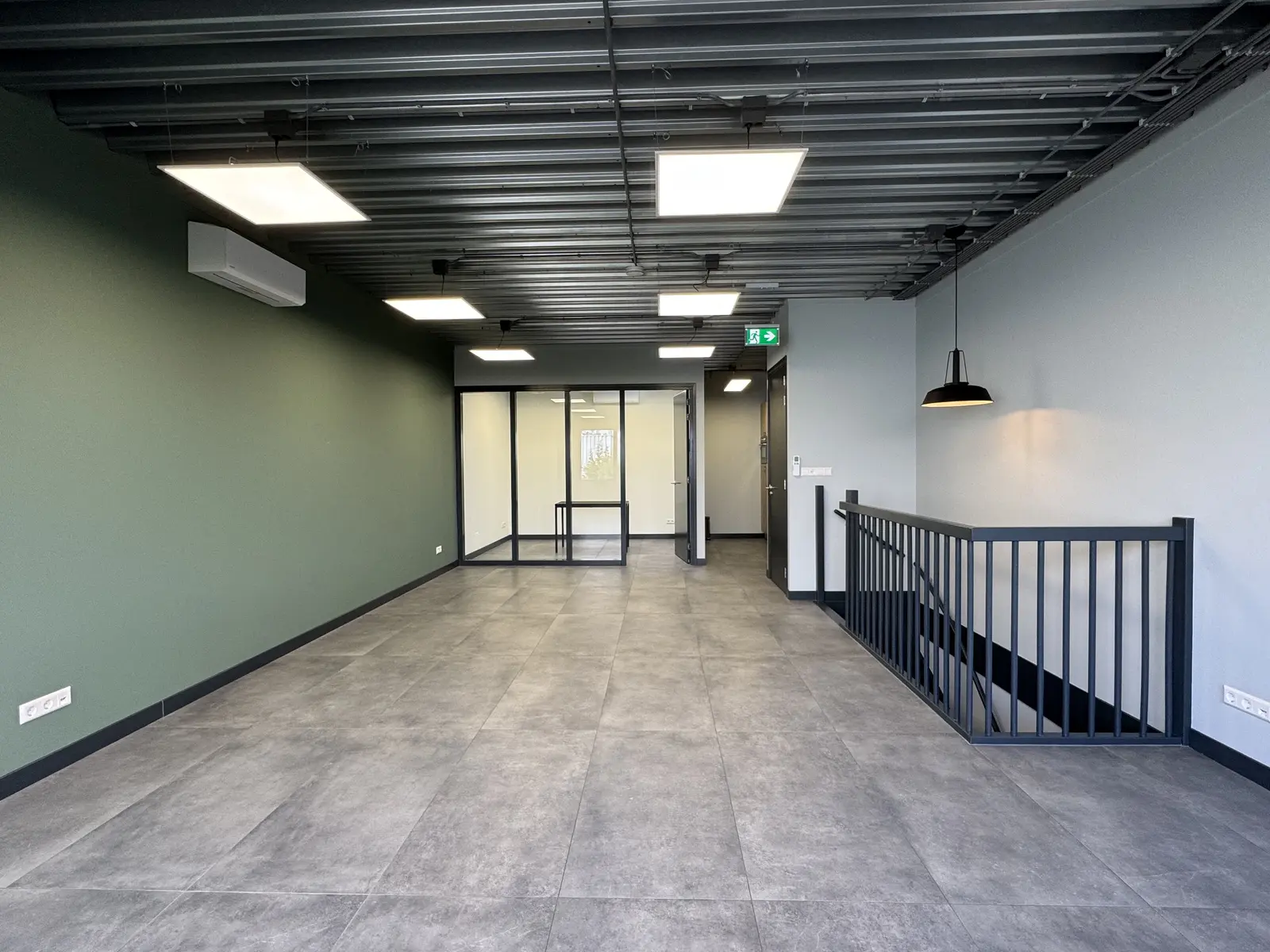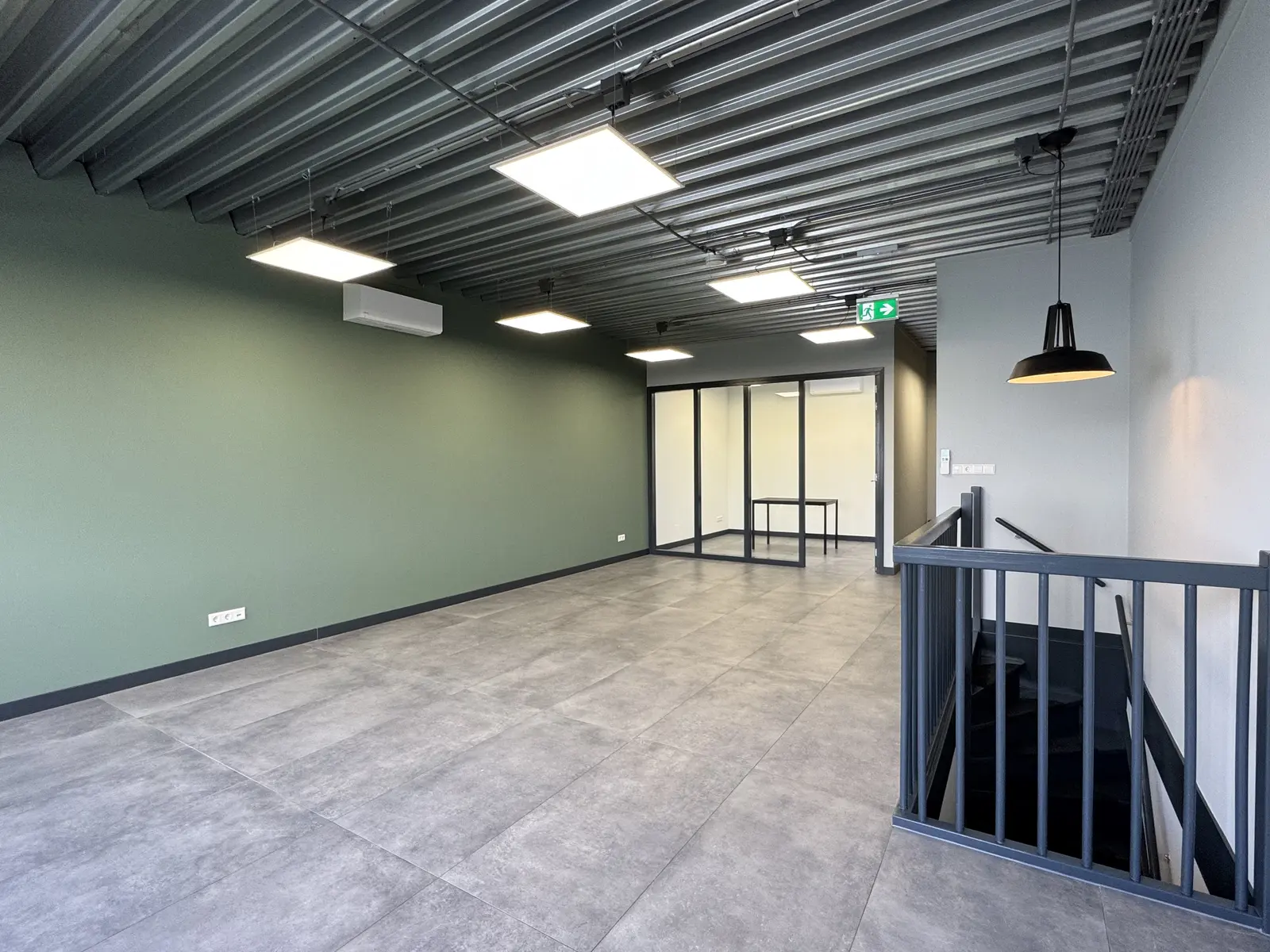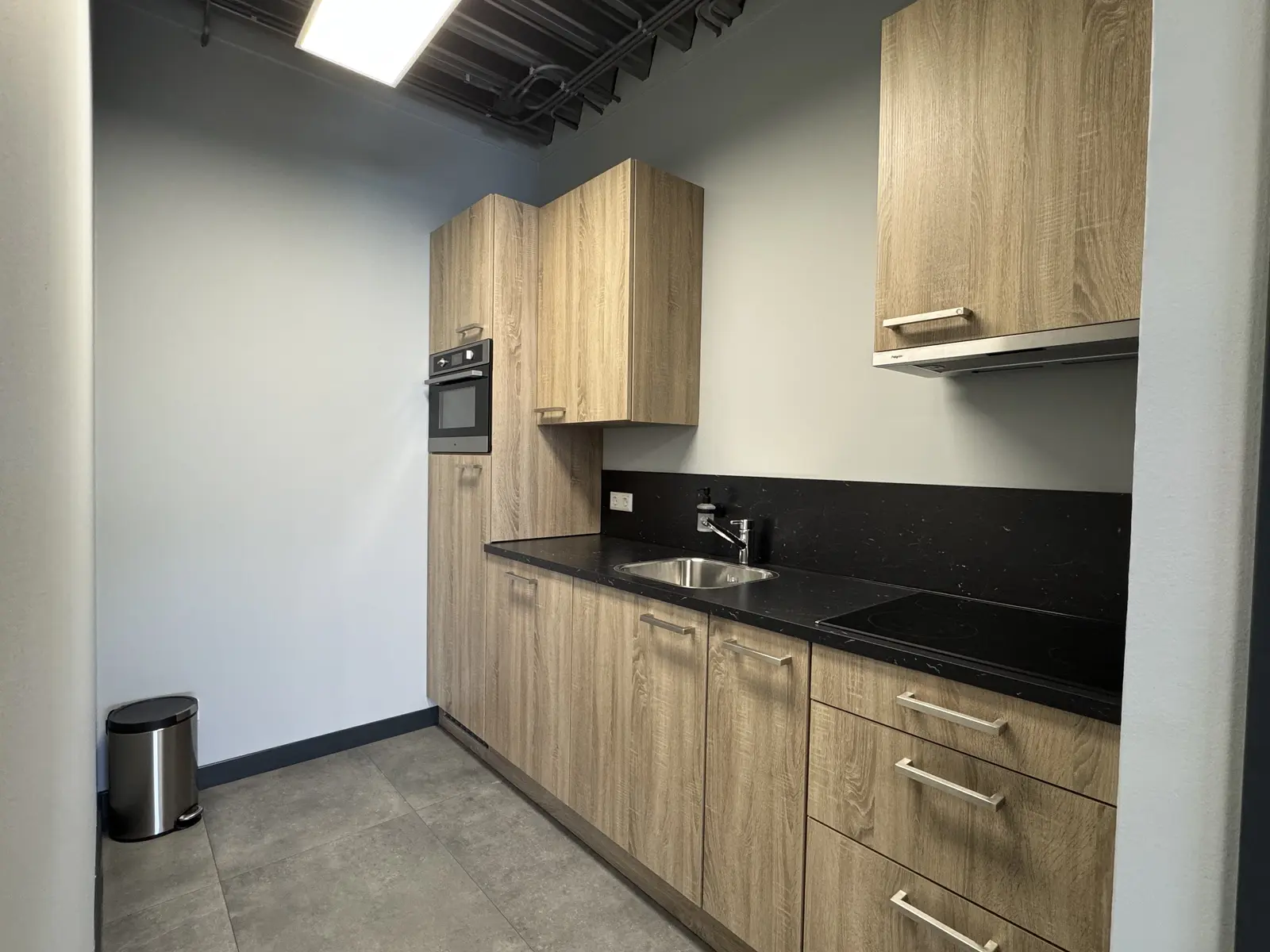 Op de eerste verdieping van een bedrijfsunit in Sassenheim een kantoorruimte gerealiseerd. Deze kantoorruimte is strak, met gladde gestucte wanden en een doorgelegde plavuizenvloer. Een efficiënte indeling, met onder ander een aparte vergaderruimte voorzien van een bedienbare daklichtkoepel. Daarnaast is de ruimte voorzien van volwaardige keuken met inbouwapparatuur en een toiletruimte.